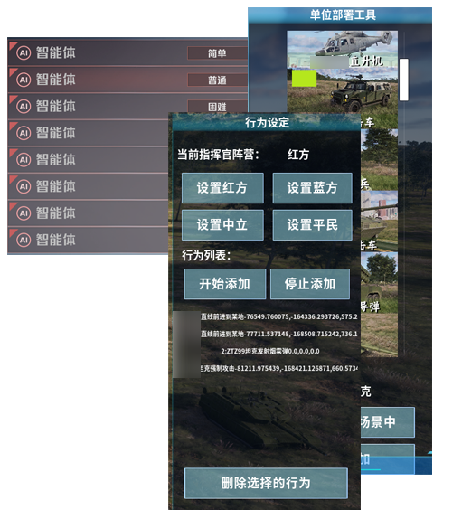 详细清晰的技术文档和示例实验教程为快速开展实验提供基础,丰富的可视化工具提供战场环境的快速编辑和设定。